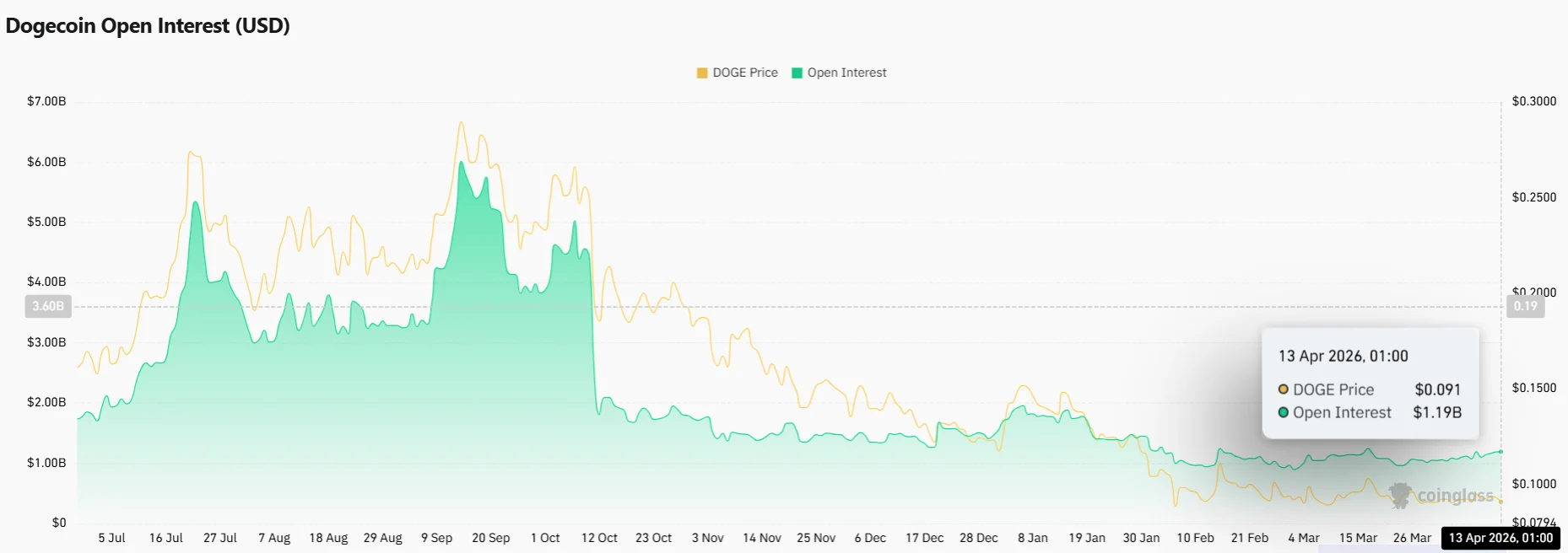 Dogecoin has predominantly exhibited range-bound behavior throughout April, constrained by broader cryptocurrency market headwinds. Coinglass statistics confirm that open interest in DOGE futures contracts expanded 1.61% over the past day.