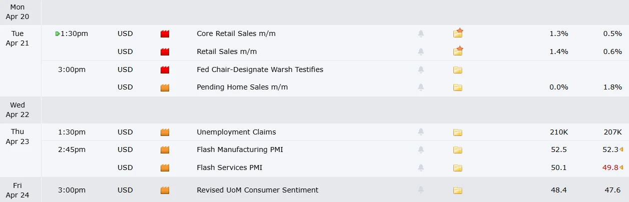 Tuesday delivers March retail sales figures from the Census Bureau. Economic forecasters project a 1.3% monthly increase. The University of Michigan’s consumer sentiment index on Friday will also attract significant attention. Its preliminary April measurement plunged to a historic nadir of 47.6 earlier this month.